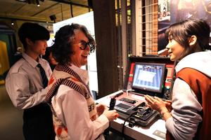 (260205) — SHANGHAI, 5 febrero, 2026 (Xinhua) — Imagen del 4 de febrero de 2026 de una invitada (c) experimentando juegos interactivos en el Museo WorldSkills, en Shanghai, en el…