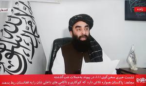 (260227) -- KABUL, 27 febrero, 2026 (Xinhua) -- Imagen del 27 de febrero de 2026 de una transmisión televisiva de Zabihullah Mujahid, portavoz del Gobierno afgano, hablando en una conferencia de prensa. Mujahid dijo el viernes durante una conferencia de prensa sobre las tensiones fronterizas que el Gobierno ha enfatizado constantemente en las soluciones pacíficas y continúa abogando por un enfoque constructivo y no violento para resolver la situación. (Xinhua/Saifurahman Safi) (jg) (da) (ce)