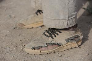 (250501) — KABUL, 1 mayo, 2025 (Xinhua) — Imagen del 29 de abril de 2025 de los zapatos de un obrero vistos en un horno de ladrillos, en Kabul, capital de Afganistán. En medio de una economía frágil, Afganistán, devastado por la guerra, sigue lidiando con un desempleo creciente. El colapso de industrias clave y la falta de infraestructura económica han dejado a muchos trabajadores afganos con dificultades para ganarse la vida. Un informe del Banco Mundial publicado en abril reveló que uno de cada cuatro jóvenes afganos está desempleado, lo que indica que la tasa de desempleo se ha duplicado en los últimos años. (Xinhua/Saifurahman Safi) (jg) (ah) (vf)