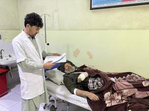 (251103) -- CIUDAD DE AIBAK, 3 noviembre, 2025 (Xinhua) -- Imagen del 3 de noviembre de 2025 de un hombre herido (d) en un hospital, en la Ciudad de Aibak, capital de la provincia de Samangan, Afganistán. Un sismo ocurrido en el norte de Afganistán ha dejado 24 muertos y más de 630 heridos, la mayoría de ellos con heridas leves, informó el lunes la Autoridad Nacional de Gestión de Desastres de Afganistán. (Xinhua/Saifurahman Safi) (rtg) (ah) (ce)