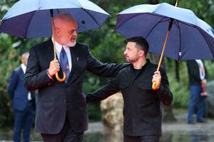 (250516) -- TIRANA, 16 mayo, 2025 (Xinhua) -- El primer ministro albanés, Edi Rama (i), conversa con el presidente ucraniano, Volodymyr Zelensky, durante la sexta Cumbre de la Comunidad Política Europea (CPE), en Tirana, Albania, el 16 de mayo de 2025. La sexta Cumbre de la CPE se llevó a cabo el viernes en Tirana, capital de Albania, con la asistencia de aproximadamente 50 líderes nacionales y regionales, así como jefes de la Unión Europea y de instituciones internacionales que asisten para abordar los desafíos económicos y de seguridad compartidos. (Xinhua/Zhao Dingzhe) (jg) (da) (ce)