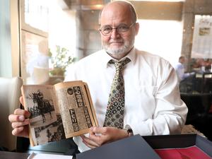 (250917) -- BERLIN, 17 septiembre, 2025 (Xinhua) -- Imagen del 7 de agosto de 2025 de Christoph Reinhardt, bisnieto de John Rabe, mostrando un libro de su colección de documentos históricos de la Masacre de Nanjing, en Berlín, Alemania. Recordar es más que un acto de reflexión, es una responsabilidad, afirmó Christoph Reinhardt, bisnieto de John Rabe, un alemán recordado por proteger a cientos de miles de civiles chinos durante la Masacre de Nanjing en 1937. (Xinhua/Du Zheyu) (ah) (ce)