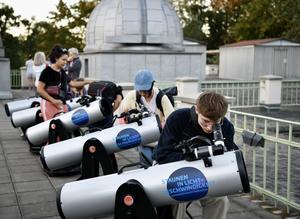 (250908) — BERLIN, 8 septiembre, 2025 (Xinhua) — Imagen del 7 de septiembre de 2025 de visitantes intentando observar en el Observatorio Archenhold, en Berlín, Alemania. El Observatorio Archenhold abrió sus puertas al público de forma gratuita el domingo por la noche, permitiendo a los visitantes experimentar de cerca el encanto de la astronomía. (Xinhua/Zhang Haofu) (oa) (ah) (ce)