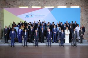 (250513) -- BERLIN, 13 mayo, 2025 (Xinhua) -- Representantes que asisten a la Reunión Ministerial de las Naciones Unidas sobre el Mantenimiento de la Paz 2025 posan para una fotografía grupal, en Berlín, Alemania, el 13 de mayo de 2025. El secretario general de la ONU, António Guterres, destacó el martes el papel de las operaciones de paz de la ONU y pidió más apoyo a los Estados miembros. (Xinhua/Du Zheyu) (oa) (ah) (ce)