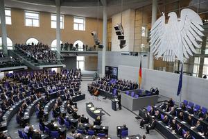 (250508) -- BERLIN, 8 mayo, 2025 (Xinhua) -- Una ceremonia para conmemorar el 80 aniversario del fin de la Segunda Guerra Mundial en Europa se lleva a cabo en el Bundestag alemán, en Berlín, Alemania, el 8 de mayo de 2025. Con la rendición incondicional de la Wehrmacht, las fuerzas armadas unificadas de la Alemania nazi, la Segunda Guerra Mundial finalizó el 8 de mayo de 1945 (también conocido como el Día de la Victoria en Europa). Al menos 55 millones de personas murieron durante la guerra y alrededor de seis millones de judíos fueron víctimas del Holocausto nazi en toda Europa. (Xinhua/Du Zheyu) (da) (ra) (ce)
