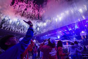 (250717) -- DUISBURGO, 17 julio, 2025 (Xinhua) -- Imagen del 16 de julio de 2025 de fuegos artificiales durante la ceremonia de apertura de los Juegos Mundiales Universitarios de la FISU Rin-Ruhr 2025, en Duisburgo, Alemania. (Xinhua/Hu Xingyu) (da) (ra) (vf)