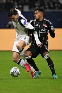 (260129) -- FRANKFURT, 29 enero, 2026 (Xinhua) -- Imagen del 28 de enero de 2026 de Ansgar Knauff (d), de Eintracht Frankfurt, disputando el balón con Joao Palhinha, de Tottenham Hotspur, durante el partido de fútbol de la Liga de Campeones de la UEFA entre Eintracht Frankfurt y Tottenham Hotspur, en Frankfurt, Alemania. (Xinhua/Ulrich Hufnagel) (da) (ra) (vf)