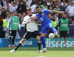 (250609) -- STUTTGART, 9 junio, 2025 (Xinhua) -- Imagen del 8 de junio de 2025 de Pascal Gross (i), de Alemania, disputando el balón con Rayan Cherki, de Francia, durante el partido por el tercer lugar de la Liga A de la Liga de Naciones de la UEFA, entre Alemania y Francia, en Stuttgart, Alemania. (Xinhua/Philippe Ruiz) (oa) (rtg) (vf)