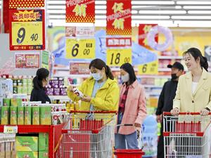 (250510) -- BEIJING, May 10, 2025 (Xinhua) -- People shop at a supermarket in Zaozhuang City, east China's Shandong Province, May 10, 2025. China's consumer price index (CPI), a main gauge of inflation, edged down 0.1 percent year on year in April, the National Bureau of Statistics (NBS) said Saturday. Core CPI, which excludes food and energy prices, rose 0.5 percent year on year. (Photo by Sun Zhongzhe/Xinhua)