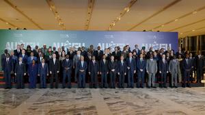 (251126) -- LUANDA, 26 noviembre, 2025 (Xinhua) -- Imagen del 24 de noviembre de 2025 de invitados posando para fotografías en la VII Cumbre de la Unión Africana (UA)-Unión Europea (UE), en Luanda, Angola. Líderes africanos y europeos reafirmaron el martes su compromiso de fortalecer la cooperación en materia de paz y seguridad, desarrollo, acción climática y migración en la VII Cumbre de la UA-UE celebrada en Luanda. (Xinhua/Julio Kikebu) (ah) (ra) (ce)