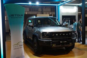(250505) -- RIAD, 5 mayo, 2025 (Xinhua) -- Imagen del 4 de mayo de 2025 de personas observando un automóvil de Jetour durante la exposición EVS Arabia Saudita 2025, en Riad, Arabia Saudita. El evento de tres días comenzó aquí el domingo, atrayendo a varias marcas chinas. (Xinhua/Luo Chen) (rtg) (ah) (ce)