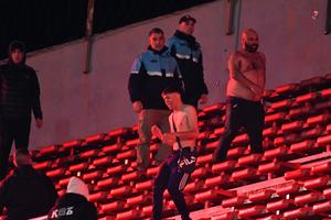 (250820) -- AVELLANEDA, 20 agosto, 2025 (Xinhua) -- Simpatizantes del equipo argentino Independiente se enfrentan con simpatizantes de Universidad de Chile durante el partido de octavos de final de la Copa Sudamericana de fútbol, en el estadio Libertadores de América, en la ciudad de Avellaneda, Argentina, el 20 de agosto de 2025. El partido entre Independiente de Argentina y Universidad de Chile, por los octavos de final de la Copa Sudamericana de fútbol, fue suspendido el miércoles a raíz de graves incidentes en las graderías. (Xinhua/Facundo Morales) (mz) (vf) (ce)