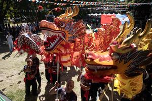 (260209) -- BUENOS AIRES, 9 febrero, 2026 (Xinhua) -- Imagen del 8 de febrero de 2026 de artistas marciales de la Asociación Lung Chuan realizando una "Danza del Dragón", durante las celebraciones del Año Nuevo chino, en la Plaza Parques Nacionales Argentinos, en la ciudad de Buenos Aires, capital de Argentina. La llegada del Año Nuevo chino en el calendario lunar, el próximo día 17 de febrero, reunió el pasado domingo en la ciudad de Buenos Aires a cientos de personas de distintas edades y nacionalidades en un colorido Festival cargado de milenarias tradiciones y expresiones artísticas de China, que año tras año ganan mayor relevancia e interés en el país suramericano. (Xinhua/Martín Zabala) (mz) (rtg) (ah) (vf)