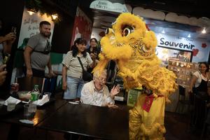 (260217) -- BUENOS AIRES, 17 febrero, 2026 (Xinhua) -- Imagen del 16 de febrero de 2026 de personas observando una presentación de la danza del león durante las celebraciones por el Año Nuevo chino, en el Barrio Chino, en la ciudad de Buenos Aires, capital de Argentina. El Barrio Chino de Buenos Aires celebró el lunes la llegada del Año Nuevo chino o Fiesta de la Primavera con un multitudinario evento lleno de color y emoción que ofreció arte, cultura, música, moda, baile y gastronomía de China. (Xinhua/Martín Zabala) (mz) (oa) (ah) (vf)