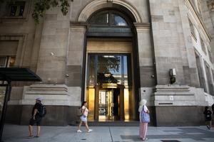 (250220) -- BUENOS AIRES, 20 febrero, 2025 (Xinhua) -- Personas caminan frente a una entrada de la casa central del Banco de la Nación Argentina, en la ciudad de Buenos Aires, Argentina, el 20 de febrero de 2025. El Gobierno argentino decretó el jueves la transformación del Banco de la Nación Argentina, conocido como Banco Nación, una de las principales entidades financieras del país, en Sociedad Anónima. (Xinhua/Martín Zabala) (mz) (rtg) (ra) (vf)