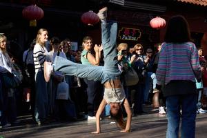 (250511) -- BUENOS AIRES, 11 mayo, 2025 (Xinhua) -- Imagen del 10 de mayo de 2025 de personas observando la presentación de una artista callejera en el Barrio Chino, en Buenos Aires, capital de Argentina. En 2009, el arco del Barrio Chino en Buenos Aires fue terminado oficialmente. Hoy en día, el Barrio Chino se ha convertido en una importante atracción turística en el área local, atrayendo a muchas personas para experimentar el encanto de la cultura oriental. (Xinhua/Meng Dingbo) (rtg) (ah)