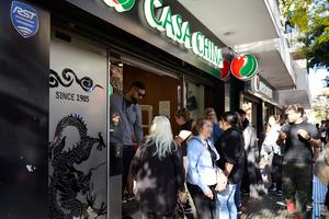 (250511) — BUENOS AIRES, 11 mayo, 2025 (Xinhua) — Imagen del 10 de mayo de 2025 de personas vistas frente a un supermercado chino en el Barrio Chino, en Buenos Aires, capital de Argentina. En 2009, el arco del Barrio Chino en Buenos Aires fue terminado oficialmente. Hoy en día, el Barrio Chino se ha convertido en una importante atracción turística en el área local, atrayendo a muchas personas para experimentar el encanto de la cultura oriental. (Xinhua/Meng Dingbo) (rtg) (ah)