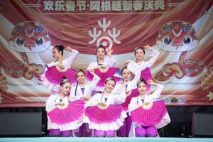 (250127) -- BUENOS AIRES, 27 enero, 2025 (Xinhua) -- Imagen del 26 de enero de 2025 de bailarinas presentando la Danza de Jazmín, durante las celebraciones del Año Nuevo Lunar chino, en la Plaza Parques Nacionales Argentinos, en la ciudad de Buenos Aires, capital de Argentina. La ciudad de Buenos Aires celebró el domingo la llegada del Año Nuevo Lunar chino con múltiples actividades culturales, las que incluyeron música, danza y gastronomía china en la Plaza Parques Nacionales Argentinos, un predio al aire libre ubicado en la zona norte de la capital que se llenó de color y festejó las milenarias tradiciones del país asiático. (Xinhua/Martín Zabala) (mz) (rtg) (ah) (vf)