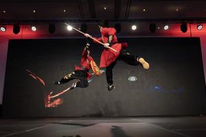 (260204) -- BUENOS AIRES, 4 febrero, 2026 (Xinhua) -- Imagen del 3 de febrero de 2026 de artistas marciales realizando una demostración de Wushu durante la recepción llevada a cabo en el marco de las celebraciones del Año Nuevo chino o Festival de la Primavera, en la ciudad de Buenos Aires, capital de Argentina. La ciudad de Buenos Aires fue escenario el martes de una velada dedicada a las expresiones artísticas y las tradiciones de China, organizada por la Embajada de China en Argentina con motivo de la próxima llegada del Año Nuevo chino del calendario lunar y el signo del Caballo del horóscopo tradicional chino. (Xinhua/Martín Zabala) (mz) (jg) (da) (vf)