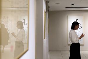 (250606) -- BUENOS AIRES, 6 junio, 2025 (Xinhua) -- Imagen del 5 de junio de 2025 de la doctora en Historia y Teoría de las Artes, Verónica Flores, participando en una visita guiada durante la muestra "Poéticas del movimiento. Arte, escritura y caligrafía en China", en la Fundación del Banco Industrial y Comercial de China, en la ciudad de Buenos Aires, Argentina. Una muestra dedicada al lenguaje de la línea y el movimiento en la cultura visual china a partir de una selección de obras caligráficas de maestros chinos fue inaugurada el jueves en la capital argentina de Buenos Aires. (Xinhua/Meng Dingbo) (mz) (rtg) (ra) (ce)