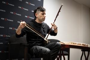 (251121) — BUENOS AIRES, 21 noviembre, 2025 (Xinhua) — Imagen del 20 de noviembre de 2025 del músico de erhu, Eddie Cruz, realizando una interpretación durante la presentación titulada «A donde nos lleven las cuerdas» celebrada en la sede de la Fundación del Banco Industrial y Comercial de China, en la ciudad de Buenos Aires, Argentina. Un concierto de cuerdas que combinó el sonido milenario de instrumentos tradicionales chinos con lenguajes sonoros contemporáneos cautivó el jueves a decenas de asistentes en la capital argentina. (Xinhua/Martín Zabala) (mz) (jg) (da) (ce)
