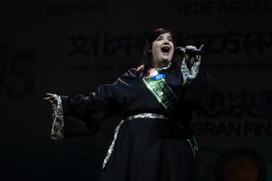 (250602) -- BUENOS AIRES, 2 junio, 2025 (Xinhua) -- Imagen del 1 de junio de 2025 de la concursante Vanesa Piccirilo participando durante la edición 2025 del concurso de canto internacional en idioma chino "Copa Cubo de Agua", en la ciudad de Buenos Aires, Argentina. Argentina acogió el domingo la edición 2025 del concurso de canto internacional en idioma chino "Copa Cubo de Agua", un evento que sirvió como puente de amistad y cultura para acercar a los pueblos de los dos países. (Xinhua/Martín Zabala) (mz) (rtg) (oa) (vf)