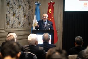 (250906) -- BUENOS AIRES, 6 septiembre, 2025 (Xinhua) -- Imagen del 5 de septiembre de 2025 del exembajador argentino ante China, Diego Guelar, hablando durante el seminario en conmemoración del 80º Aniversario de la Victoria en la Guerra de Resistencia del Pueblo Chino Contra la Agresión Japonesa y la Guerra Mundial Antifascista, en la ciudad de Buenos Aires, capital de Argentina. Académicos y diplomáticos destacaron el viernes en Argentina el inquebrantable compromiso de China con la paz mundial, durante un seminario en conmemoración del 80º Aniversario de la Victoria en la Guerra de Resistencia del Pueblo Chino Contra la Agresión Japonesa y la Guerra Mundial Antifascista. (Xinhua/Martín Zabala) (mz) (jg) (da)