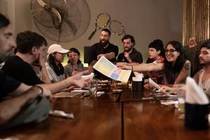 (260426) -- BUENOS AIRES, 26 abril, 2026 (Xinhua) -- Imagen del 25 de abril de 2026 de jóvenes miembros de la comunidad de entusiastas de la cultura china "Gauchinos" participando en un encuentro llevado a cabo en un bar, en la ciudad de Buenos Aires, capital de Argentina. Un grupo de jóvenes argentinos bajo el nombre de Gauchinos organiza encuentros en bares de la ciudad de Buenos Aires con el objetivo de combinar el intercambio lingüístico entre el castellano y el chino en una propuesta que une elementos característicos de ambas culturas. (Xinhua/Martín Zabala) (mz) (ah) (da) (ce)