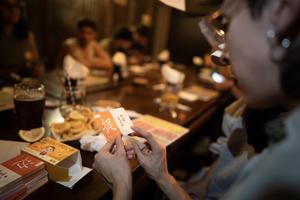 (260426) -- BUENOS AIRES, 26 abril, 2026 (Xinhua) -- Imagen del 25 de abril de 2026 de una joven miembro de la comunidad de entusiastas de la cultura china "Gauchinos" observando una tarjeta durante el encuentro llevado a cabo en un bar, en la ciudad de Buenos Aires, capital de Argentina. Un grupo de jóvenes argentinos bajo el nombre de Gauchinos organiza encuentros en bares de la ciudad de Buenos Aires con el objetivo de combinar el intercambio lingüístico entre el castellano y el chino en una propuesta que une elementos característicos de ambas culturas. (Xinhua/Martín Zabala) (mz) (ah) (da) (ce)