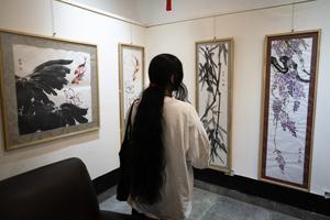(250226) -- BUENOS AIRES, 26 febrero, 2025 (Xinhua) -- Imagen del 25 de febrero de 2025 de una mujer observando una exposición de pinturas y caligrafías chinas a cargo del profesor Abel Dellutri durante el acto de inicio del calendario académico del Instituto Confucio de la Universidad de Buenos Aires (ICUBA) en el espacio cultural Sábato de la Facultad de Ciencias Económicas de la UBA, en la ciudad de Buenos Aires, capital de Argentina. El ICUBA dio inicio a su calendario académico en el Año de la Serpiente de madera con un emotivo acto cultural, que sirvió como un auspicioso comienzo para este nuevo ciclo. (Xinhua/Martín Zabala) (mz) (ah) (ra) (vf)