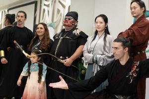 (250409) — BUENOS AIRES, 9 abril, 2025 (Xinhua) — Imagen del 8 de abril de 2025 de artistas caracterizados con indumentaria típica de China posando durante la presentación del servicio chino de transmisión de video iQIYI, en la ciudad de Buenos Aires, Argentina. Los múltiples pliegues del rico intercambio cultural entre Argentina y China sumaron el martes una nueva capa de interculturalidad con el desembarco en el país sudamericano del servicio chino de transmisión de video iQIYI. (Xinhua/Martín Zabala) (mz) (jg) (da) (vf)