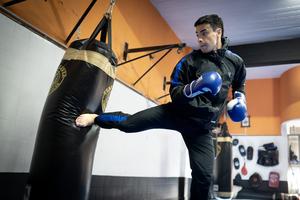 (250806) -- BUENOS AIRES, 6 agosto, 2025 (Xinhua) -- Imagen del 5 de agosto de 2025 del luchador argentino de kickboxing, Matías García, participando en una sesión de entrenamiento, en la ciudad de Buenos Aires, capital de Argentina. García afirmó que sus expectativas son "gigantescas" para competir en los Juegos Mundiales de Chengdu 2025 y llevar consigo la medalla de oro en la categoría K1. (Xinhua/Martín Zabala) (mz) (ah) (ra) (ce)