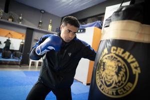 (250806) -- BUENOS AIRES, 6 agosto, 2025 (Xinhua) -- Imagen del 5 de agosto de 2025 del luchador argentino de kickboxing, Matías García, participando en una sesión de entrenamiento, en la ciudad de Buenos Aires, capital de Argentina. García afirmó que sus expectativas son "gigantescas" para competir en los Juegos Mundiales de Chengdu 2025 y llevar consigo la medalla de oro en la categoría K1. (Xinhua/Martín Zabala) (mz) (ah) (ra) (ce)