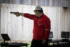 (250409) -- BUENOS AIRES, 9 abril, 2025 (Xinhua) -- Imagen del 8 de abril de 2025 del atleta Xu Chenfei de China compitiendo en la clasificación de la categoría pistola de tiro rápido de 25 metros masculino en el Mundial de Tiro Buenos Aires 2025, en el polígono del Tiro Federal Argentino, en la ciudad de Buenos Aires, capital de Argentina. El presidente de la Federación Internacional de Tiro Deportivo, el italiano Luciano Rossi, elogió el martes las actuaciones de los atletas de China e India en el Mundial de Tiro Buenos Aires 2025. (Xinhua/Martín Zabala) (mz) (ah) (ra) (ce)