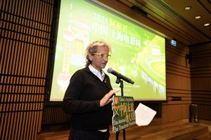 (250512) -- BUENOS AIRES, 12 mayo, 2025 (Xinhua) -- Imagen del 11 de mayo de 2025 de la directora del Palacio Libertad - Centro Cultural Domingo Faustino Sarmiento, Valeria Ambrosio, hablando durante la inauguración del "Ciclo de Cine de Shanghai, China", en una de las salas del Palacio Libertad, en la ciudad de Buenos Aires, capital de Argentina. La ciudad china de Shanghai, conocida como la "Perla de Oriente", muestra su encanto en Argentina a través de un atractivo ciclo de cine contemporáneo y una selecta exposición de fotografías, dando testimonio de su estilo de vida y su carácter innovador y abierto. (Xinhua/Martín Zabala) (mz) (rtg) (ah) (vf)