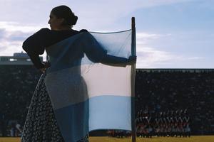 (250709) -- BUENOS AIRES, 9 julio, 2025 (Xinhua) -- Una mujer porta un traje tradicional y una bandera mientras participa en un Festival de Bandas Militares, en el marco de la celebración del 209º aniversario del Día de la Independencia de Argentina, en el Campo Hípico Militar, en la ciudad de Buenos Aires, capital de Argentina, el 9 de julio de 2025. Argentina conmemoró el miércoles el 209º aniversario de la Independencia del dominio español, "uno de los hitos más trascendentales" de su historia. (Xinhua/Meng Dingbo) (ah) (ra) (vf)