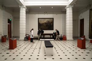 (250517) -- BUENOS AIRES, 17 mayo, 2025 (Xinhua) -- Imagen del 13 de mayo de 2025 de Paula Olabarrieta (i), responsable del área de conservación del Museo Histórico Nacional (MHN), supervisando el traslado de un pianoforte cuadrado del siglo XIX, instrumento que se utilizó para ejecutar por primera vez el Himno Nacional Argentino en 1813, en una de las salas del museo, en la ciudad de Buenos Aires, capital de Argentina. El MHN y las demás entidades de su tipo celebran el 18 de mayo el Día Internacional de los Museos con la intención de mantener vivo el pasado, como valora el director del MHN, Gabriel Di Meglio. (Xinhua/Martín Zabala) (mz) (oa) (da)