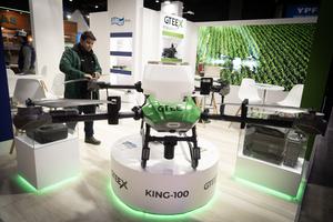 (250717) -- BUENOS AIRES, 17 julio, 2025 (Xinhua) -- Un trabajador acomoda las hélices de un dron agrícola para pulverización, siembra y fertilización en un estand durante la edición 137 de la Exposición de Ganadería, Agricultura e Industria, en la ciudad de Buenos Aires, capital de Argentina, el 17 de julio de 2025. (Xinhua/Martín Zabala) (mz) (da) (ra) (ce)