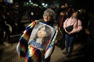 (250613) -- BUENOS AIRES, 13 junio, 2025 (Xinhua) -- Imagen del 12 de junio de 2025 de una mujer sosteniendo una imagen de la expresidenta argentina, Cristina Fernández de Kirchner, durante una manifestación en apoyo a la exmandataria frente al Palacio de Tribunales, en la ciudad de Buenos Aires, capital de Argentina. Sindicatos, organizaciones sociales y estudiantiles se movilizaron el jueves en la ciudad argentina de Buenos Aires (capital) en respaldo a la expresidenta Cristina Fernández de Kirchner (2007-2015), luego de que la Corte Suprema de Justicia confirmó una condena a seis años de prisión en contra de la dirigente política. (Xinhua/Martín Zabala) (mz) (jg) (da) (vf)