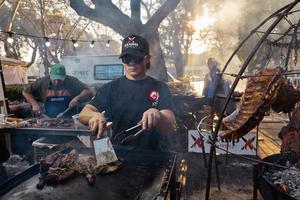 (250713) -- BUENOS AIRES, 13 julio, 2025 (Xinhua) -- Imagen del 12 de julio de 2025 de empleados asando carne en un festival gastronómico, en Buenos Aires, Argentina. Se llevó a cabo un festival gastronómico de dos días para celebrar el Día de la Independencia de Argentina en Buenos Aires. (Xinhua/Meng Dingbo) (oa) (ah)
