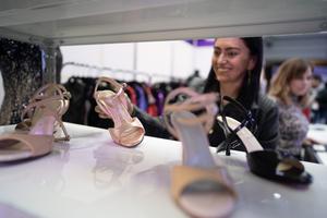 (250821) -- BUENOS AIRES, 21 agosto, 2025 (Xinhua) -- Imagen del 20 de agosto de 2025 de una mujer observando un zapato de baile de tango exhibido en un estand de la feria instalada en el marco del Festival y Mundial de Tango 2025, en el Auditorio de la Usina del Arte, en la ciudad de Buenos Aires, capital de Argentina. La capital de Argentina, Buenos Aires, comenzó a vibrar desde el miércoles con una nueva edición del Festival y Mundial de Tango 2025, actividad que tuvo su puntapié formal con actuaciones históricas de orquestas de tango, clases y exhibiciones en distintos escenarios. (Xinhua/Martín Zabala) (mz) (jg) (ah) (ce)