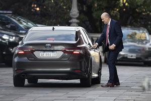 (250412) -- BUENOS AIRES, 12 abril, 2025 (Xinhua) -- Imagen del 11 de abril de 2025 del ministro argentino de Desregulación y Transformación del Estado, Federico Sturzenegger, llegando a la Casa Rosada, en la ciudad de Buenos Aires, capital de Argentina. El ministro de Economía de Argentina, Luis Caputo, anunció el viernes que a partir del próximo lunes se levantarán las restricciones cambiarias en el país, y el régimen cambiario pasará a un sistema de flotación de bandas entre los 1.000 y 1.400 pesos por dólar. (Xinhua/Martín Zabala) (mz) (jg) (da)
