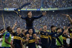 (251109) -- BUENOS AIRES, 9 noviembre, 2025 (Xinhua) -- Jugadores de Boca Juniors festejan al término del partido correspondiente a la fecha 15 del Torneo Clausura 2025, ante River Plate, celebrado en el estadio Alberto J. Armando, en la ciudad de Buenos Aires, Argentina, el 9 de noviembre de 2025. (Xinhua/Martín Zabala) (mz) (rtg) (da)