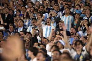 (250326) -- BUENOS AIRES, 26 marzo, 2025 (Xinhua) -- Imagen del 25 de marzo de 2025 de aficionados de Argentina animando durante el partido de las Eliminatorias Sudamericanas para el Mundial de Estados Unidos, México y Canadá 2026, ante Brasil, celebrado en el Estadio Mâs Monumental, en la ciudad de Buenos Aires, capital de Argentina. (Xinhua/Martín Zabala) (ah) (ra) (vf)