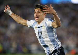 (250326) -- BUENOS AIRES, 26 marzo, 2025 (Xinhua) -- Imagen del 25 de marzo de 2025 de Giuliano Simeone, de Argentina, festejando su anotación durante el partido de las Eliminatorias Sudamericanas para el Mundial de Estados Unidos, México y Canadá 2026, ante Brasil, celebrado en el Estadio Mâs Monumental, en la ciudad de Buenos Aires, capital de Argentina. (Xinhua/Martín Zabala) (ah) (ra) (vf)