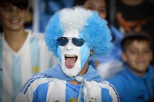 (250326) -- BUENOS AIRES, 26 marzo, 2025 (Xinhua) -- Imagen del 25 de marzo de 2025 de un aficionado de Argentina animando durante el partido de las Eliminatorias Sudamericanas para el Mundial de Estados Unidos, México y Canadá 2026, ante Brasil, celebrado en el Estadio Mâs Monumental, en la ciudad de Buenos Aires, capital de Argentina. (Xinhua/Martín Zabala) (ah) (ra) (vf)
