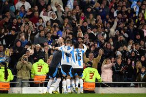 (250611) -- BUENOS AIRES, 11 junio, 2025 (Xinhua) -- Imagen del 10 de junio de 2025 de jugadores de Argentina festejando después de anotar durante el partido ante Colombia correspondiente a las Eliminatorias Sudamericanas para el Mundial de Estados Unidos, México y Canadá 2026, celebrado en el Estadio Monumental, en la ciudad de Buenos Aires, capital de Argentina. (Xinhua/Meng Dingbo) (ra) (ce)