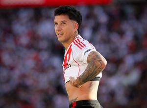 (250427) — BUENOS AIRES, 27 abril, 2025 (Xinhua) — El jugador Sebastián Driussi, de River Plate, festeja su anotación durante el partido correspondiente a la Jornada 15 del Torneo Apertura de la Liga Profesional celebrado en el Estadio Antonio Vespucio Liberti, en la ciudad de Buenos Aires, capital de Argentina, el 27 de abril de 2025. (Xinhua/Martín Zabala) (mz) (rtg) (da)