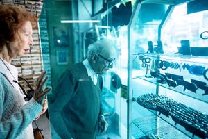 (251119) -- BUENOS AIRES, 19 noviembre, 2025 (Xinhua) -- El maestro botonero, Eduardo Alonso (d), atiende a una clienta en su establecimiento "El rey de los botones", en la ciudad de Buenos Aires, Argentina, el 19 de noviembre de 2025. Un hombre de 86 años que reside en la capital de Argentina, Buenos Aires, mantiene vivo el oficio de hacer botones, una verdadera pasión artesanal por la que es reconocido a diario por vecinos e incluso turistas, que se acercan a conocer y admirar su esmerada labor en el populoso barrio de Flores. (Xinhua/Martín Zabala) (mz) (jg) (da) (ce)