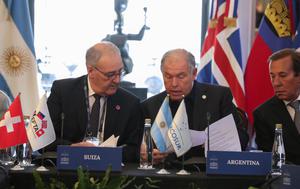 (250702) -- BUENOS AIRES, 2 julio, 2025 (Xinhua) -- Imagen proveída por la Presidencia de Argentina del ministro de Relaciones Exteriores, Comercio Internacional y Culto argentino, Gerardo Werthein (c), y el vicepresidente de la Confederación Suiza, titular del Departamento Federal de Economía, Formación e Investigación, y Consejero Federal, Guy Parmelin (i), participando durante las negociaciones para la firma de un Tratado de Libre Comercio entre los Estados Partes Signatarios del Mercado Común del Sur (Mercosur) y los Estados que integran la Asociación Europea de Libre Comercio (EFTA, siglas en inglés), en la ciudad de Buenos Aires, capital de Argentina, el 2 de julio de 2025. Los Estados Partes Signatarios del Mercosur, que son Argentina, Brasil, Paraguay y Uruguay, así como los Estados que integran la EFTA, que son Islandia, Liechtenstein, Noruega y Suiza, anunciaron el miércoles en Argentina la conclusión de las negociaciones de un Tratado de Libre Comercio. (Xinhua/Presidencia de Argentina) (jg) (vf)